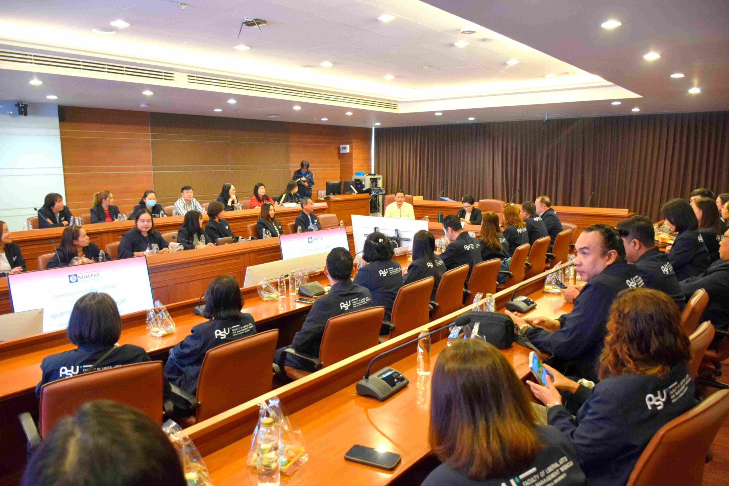 พร้อมทั้งเข้าเยี่ยมชมกระบวนการจัดเก็บข้อมูลภาคสนาม ณ ศูนย์สำรวจความคิดเห็น “นิด้าโพล” อาคารเสรีไทย สถาบันบัณฑิตพัฒนบริหารศาสตร์