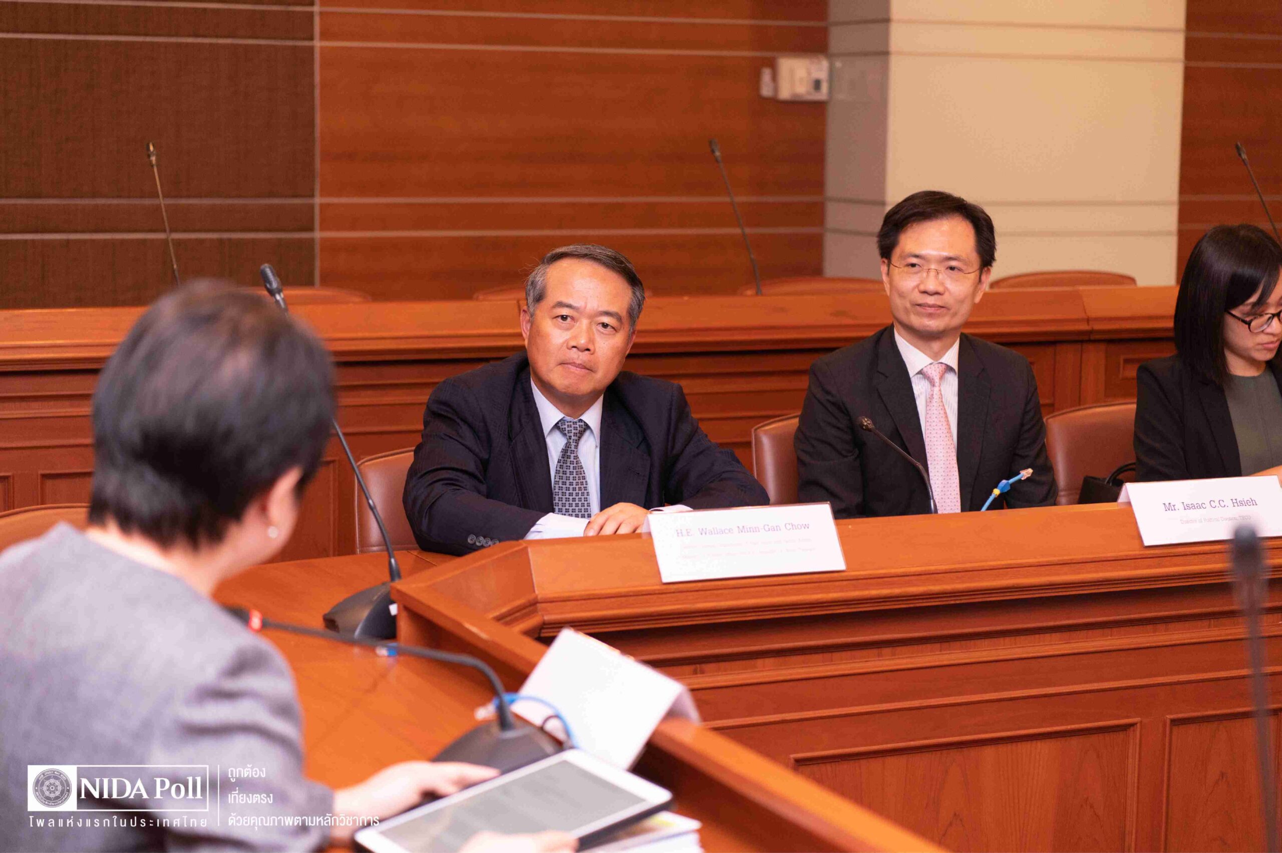 วันอังคารที่ 21 มีนาคม พ.ศ. 2566 เวลา 15.30 น. สถาบันบัณฑิตพัฒนบริหารศาสตร์ (นิด้า) และศูนย์สำรวจความคิดเห็น “นิด้าโพล” ให้การต้อนรับ H.E. Wallace Minn-Gan Chow อธิบดีกรมกิจการเอเชียตะวันออกและแปซิฟิก กระทรวงการต่างประเทศ สาธารณรัฐจีน (ไต้หวัน) และคณะผู้บริหารจาก สำนักงานเศรษฐกิจและวัฒนธรรมไทเป ประจำประเทศไทย