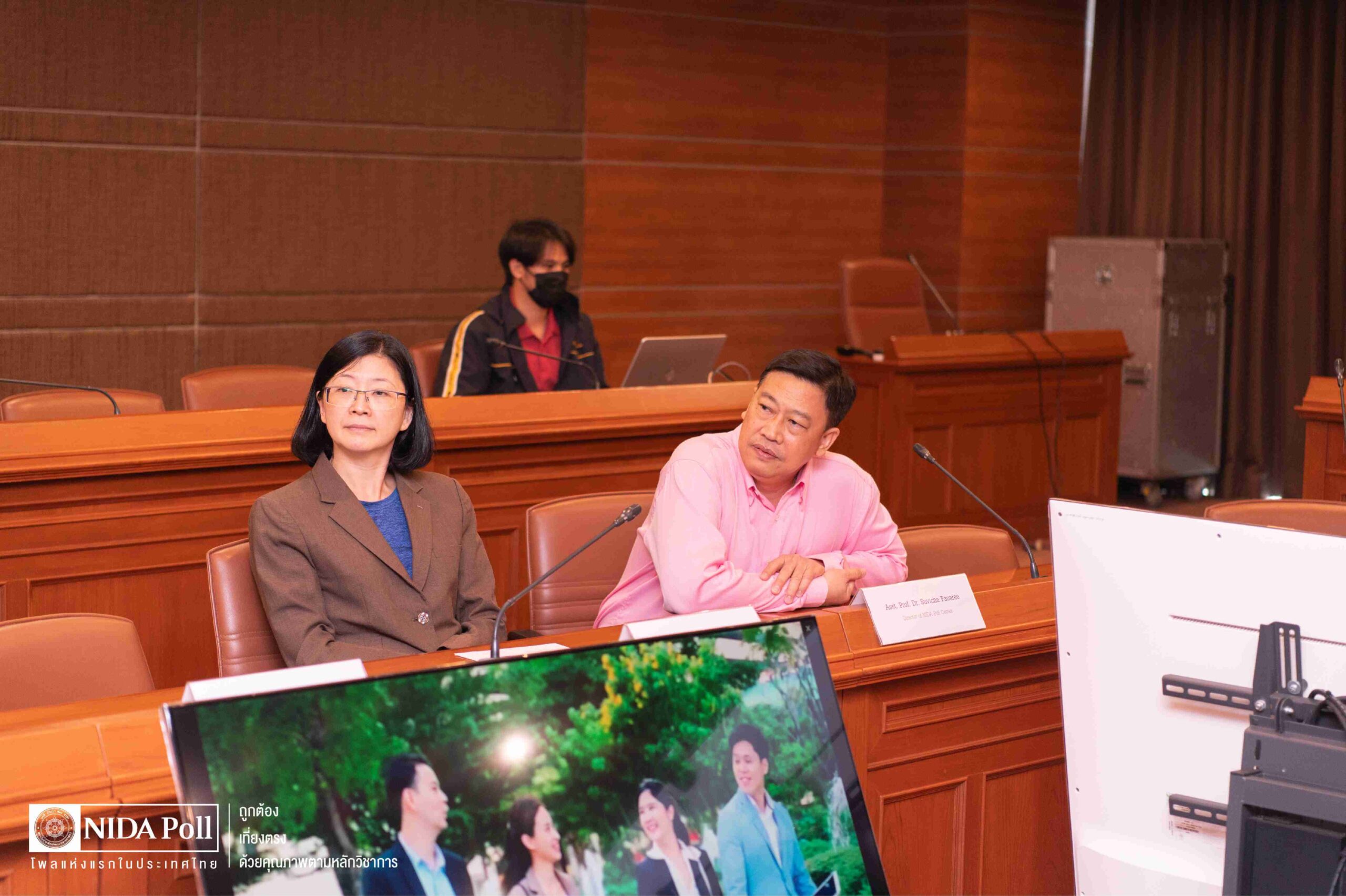 เนื่องจากคณะผู้แทนจากสาธารณรัฐจีน (ไต้หวัน) มีความสนใจในกระบวนการดำเนินงานสำรวจความคิดเห็นของ “นิด้าโพล” ผู้ช่วยศาสตราจารย์ ดร.สุวิชา เป้าอารีย์ ผู้อำนวยการศูนย์สำรวจความคิดเห็น “นิด้าโพล” จึงได้บรรยายเกี่ยวกับ
