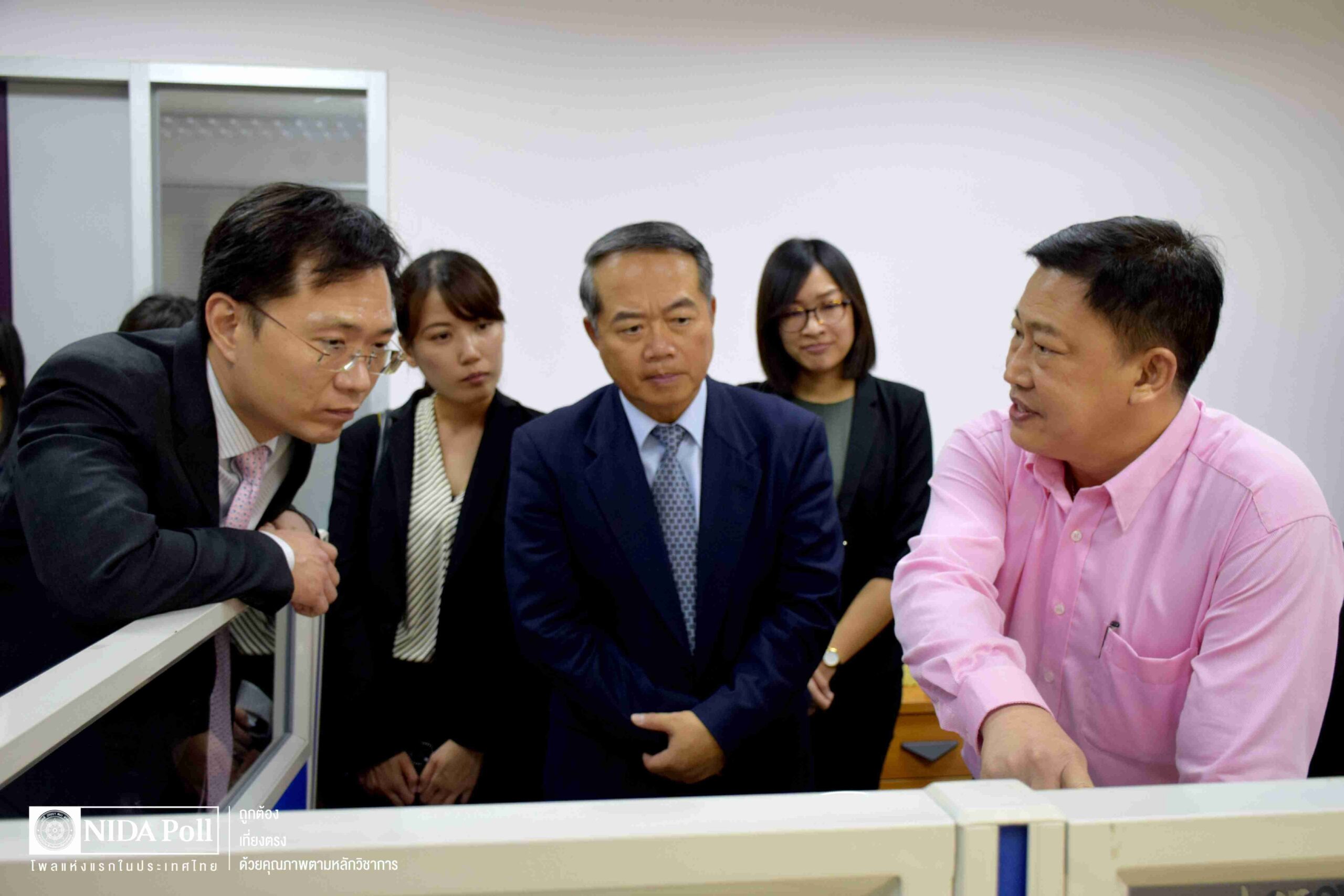นอกจากนี้ คณะผู้แทนยังได้เยี่ยมชมการปฏิบัติงานจริงของการเก็บข้อมูลทางโทรศัพท์ของ “นิด้าโพล” ณ อาคารเสรีไทย เพื่อแลกเปลี่ยนความรู้และเสริมสร้างความเข้าใจในการดำเนินงานด้านการสำรวจความคิดเห็นในระดับสากล