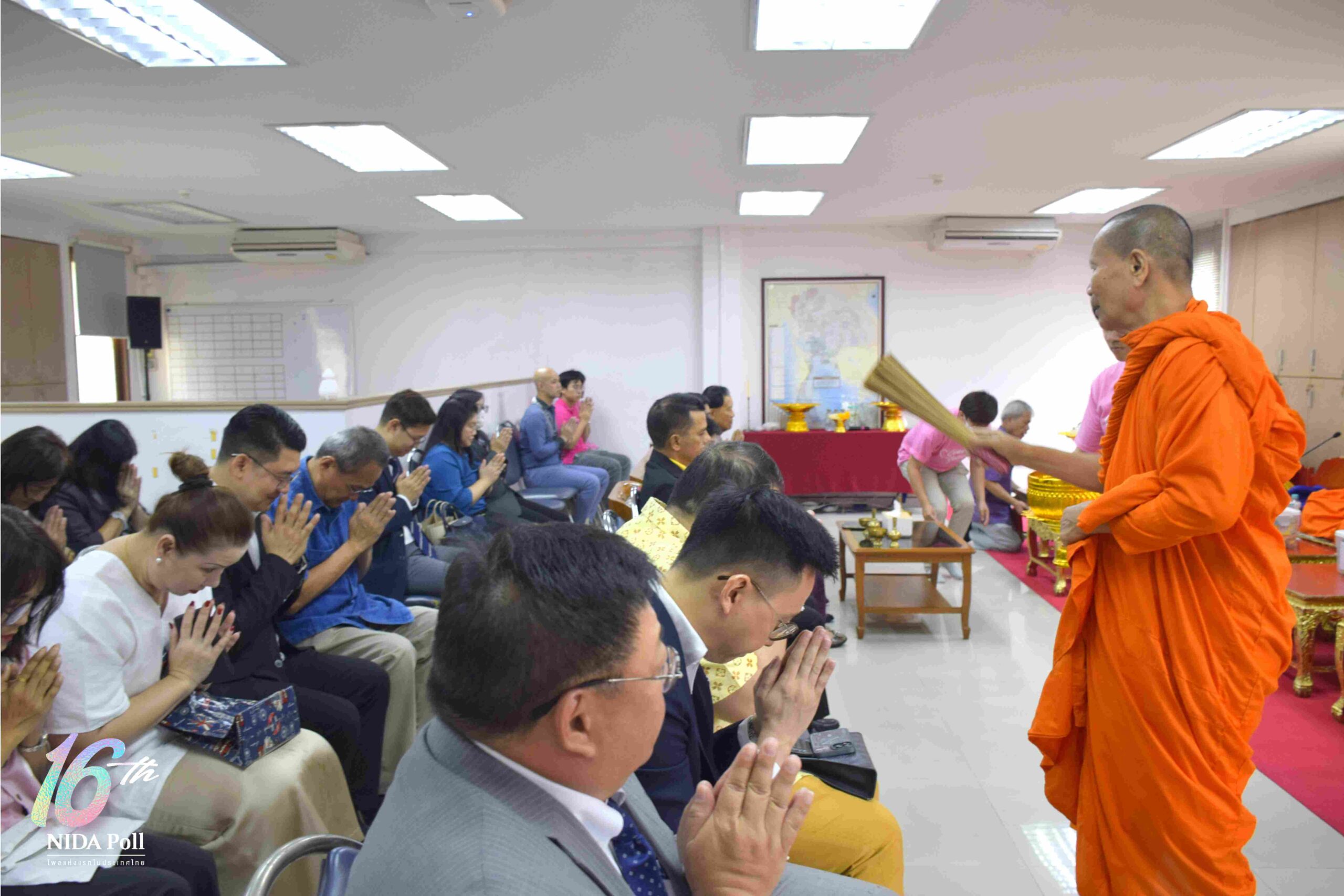 วันอังคารที่ 30 กรกฎาคม 2567 ศูนย์สำรวจความคิดเห็น “นิด้าโพล (NIDA Poll)” สถาบันบัณฑิตพัฒนบริหารศาสตร์ จัดงานทำบุญฉลองครบรอบปีที่ 16 โดยมี ผู้ช่วยศาสตราจารย์ ดร.สุวิชา เป้าอารีย์ ผู้อำนวยการศูนย์สำรวจความคิดเห็น “นิด้าโพล” นำทีมบุคลากรร่วมประกอบกิจกรรมสำคัญเพื่อความเป็นสิริมงคล