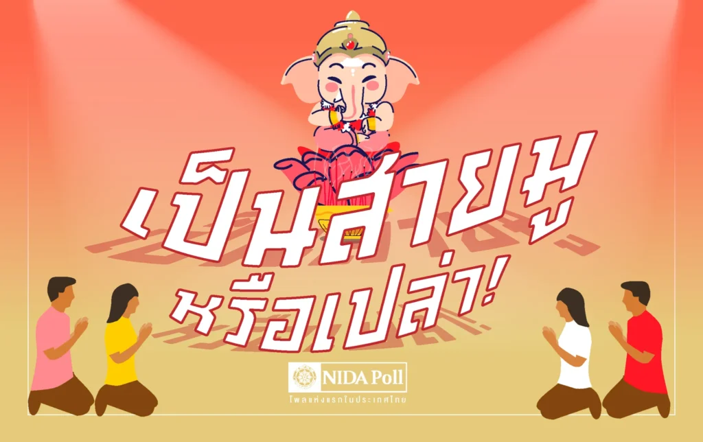 ศูนย์สำรวจความคิดเห็น นิด้าโพล สถาบันบัณฑิตพัฒนบริหารศาสตร์ (นิด้า) เปิดเผยผลสำรวจของประชาชน เรื่อง เป็นสายมู หรือเปล่า! ทำการสำรวจระหว่างวันที่ 7-10 พฤศจิกายน 2566 จากประชาชนที่นับถือศาสนาพุทธ อายุ 18 ปีขึ้นไป กระจายทุกภูมิภาค ระดับการศึกษา อาชีพ และรายได้ ทั่วประเทศ รวมทั้งสิ้น จำนวน 1,310 หน่วยตัวอย่าง เกี่ยวกับการกราบไหว้/บูชาสิ่งศักดิ์สิทธิ์และความเชื่อในเรื่องเหนือธรรมชาติ การสำรวจอาศัยการสุ่มตัวอย่างโดยใช้ความน่าจะเป็นจากบัญชีรายชื่อฐานข้อมูลตัวอย่างหลัก (Master Sample) ของ นิด้าโพล สุ่มตัวอย่างแบบหลายขั้นตอน (Multi-stage Sampling) เก็บข้อมูลด้วยวิธีการสัมภาษณ์ทางโทรศัพท์ โดยกำหนดค่าความเชื่อมั่น ร้อยละ 97.0