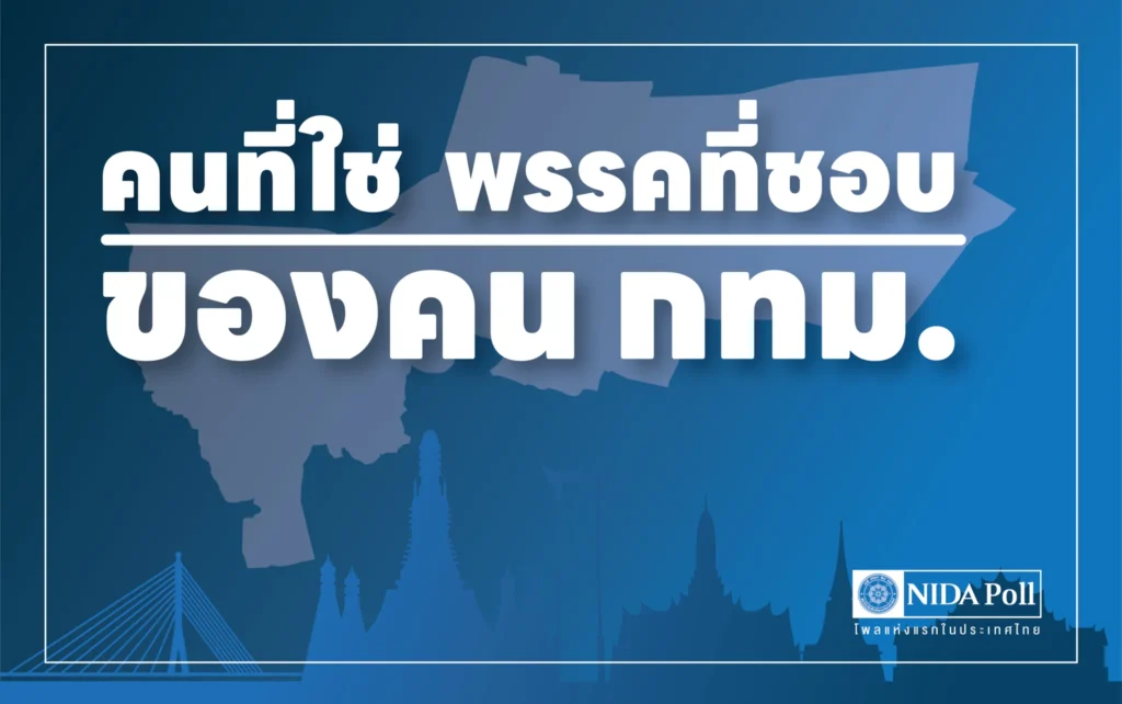 ศูนย์สำรวจความคิดเห็น นิด้าโพล สถาบันบัณฑิตพัฒนบริหารศาสตร์ (นิด้า) เปิดเผยผลสำรวจของประชาชน เรื่อง คนที่ใช่ พรรคที่ชอบ ของคน กทม. ทำการสำรวจระหว่างวันที่ 21-27 ตุลาคม 2565 จากประชาชนที่มีอายุ 18 ปีขึ้นไป และมีสิทธิเลือกตั้งในกรุงเทพมหานคร ครอบคลุมพื้นที่ทั้ง 50 เขต กระจายทุกระดับการศึกษา อาชีพ และรายได้ รวมทั้งสิ้น จำนวน 2,000 หน่วยตัวอย่าง เกี่ยวกับคนที่ใช่ พรรคที่ชอบ ของคน กทม. การสำรวจอาศัยการสุ่มตัวอย่างโดยใช้ความน่าจะเป็นจากบัญชีรายชื่อฐานข้อมูลตัวอย่างหลัก (Master Sample) ของ นิด้าโพล สุ่มตัวอย่างด้วยวิธีแบบง่าย (Simple Random Sampling) เก็บข้อมูลด้วยวิธีการสัมภาษณ์ทางโทรศัพท์ โดยกำหนดค่าความเชื่อมั่น ร้อยละ 97.0