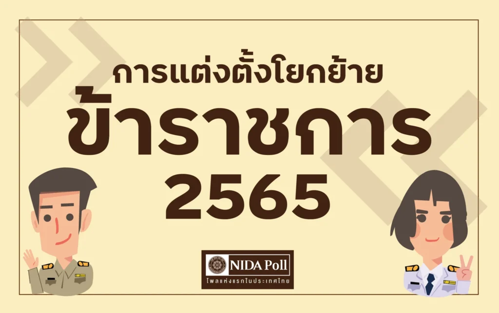 ศูนย์สำรวจความคิดเห็น นิด้าโพล สถาบันบัณฑิตพัฒนบริหารศาสตร์ (นิด้า) เปิดเผยผลสำรวจของประชาชน เรื่อง การแต่งตั้งโยกย้ายข้าราชการ 2565 ทำการสำรวจระหว่างวันที่ 12-14 กันยายน 2565 จากประชาชนที่เป็นข้าราชการ พนักงาน ลูกจ้างของรัฐ และพนักงานรัฐวิสาหกิจ อายุ 18 ปีขึ้นไป กระจายทุกภูมิภาค ระดับการศึกษา และรายได้ ทั่วประเทศ รวมทั้งสิ้น จำนวน 1,310 หน่วยตัวอย่าง เกี่ยวกับการแต่งตั้งโยกย้ายข้าราชการ และความเป็นธรรมในการแต่งตั้งโยกย้ายข้าราชการ การสำรวจอาศัยการสุ่มตัวอย่างโดยใช้ความน่าจะเป็นจากบัญชีรายชื่อฐานข้อมูลตัวอย่างหลัก (Master Sample) ของ นิด้าโพล สุ่มตัวอย่างด้วยวิธีแบบง่าย (Simple Random Sampling) เก็บข้อมูลด้วยวิธีการสัมภาษณ์ทางโทรศัพท์ โดยกำหนดค่าความเชื่อมั่น ร้อยละ 97.0