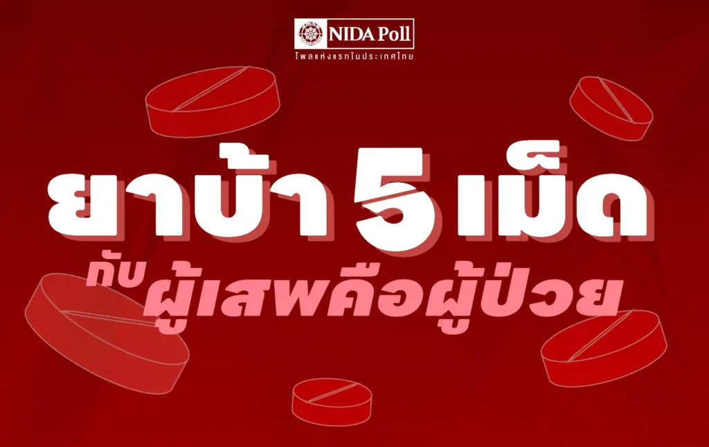 ศูนย์สำรวจความคิดเห็น นิด้าโพล สถาบันบัณฑิตพัฒนบริหารศาสตร์ (นิด้า) เปิดเผยผลการสำรวจของประชาชน เรื่อง ยาบ้า 5 เม็ดกับผู้เสพ คือ ผู้ป่วย ทำการสำรวจระหว่างวันที่ 18-20 มีนาคม 2567 จากประชาชนที่มีอายุ 15 ปีขึ้นไป กระจายทุกภูมิภาค ระดับการศึกษา อาชีพ และรายได้ ทั่วประเทศ รวมทั้งสิ้น จำนวน 1,310 หน่วยตัวอย่าง เกี่ยวกับประมวลกฎหมายยาเสพติดที่ยึดหลัก ผู้เสพ คือ ผู้ป่วย การสำรวจอาศัยการสุ่มตัวอย่างโดยใช้ความน่าจะเป็นจากบัญชีรายชื่อฐานข้อมูลตัวอย่างหลัก (Master Sample) ของ นิด้าโพล สุ่มตัวอย่างด้วยวิธีแบบง่าย (Simple Random Sampling) เก็บข้อมูลด้วยวิธีการสัมภาษณ์ทางโทรศัพท์ โดยกำหนดค่าความเชื่อมั่น ร้อยละ 97.0