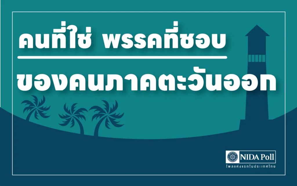 คนที่ใช่ พรรคที่ชอบ ของคนภาคตะวันออก (จังหวัดในภาคตะวันออก ประกอบด้วย ฉะเชิงเทรา ชลบุรี ระยอง จันทบุรี ตราด นครนายก ปราจีนบุรี และสระแก้ว) ศูนย์สำรวจความคิดเห็น นิด้าโพล สถาบันบัณฑิตพัฒนบริหารศาสตร์ (นิด้า) เปิดเผยผลสำรวจของประชาชน เรื่อง คนที่ใช่ พรรคที่ชอบของคนภาคตะวันออก ทำการสำรวจระหว่างวันที่ 7-10 พฤศจิกายน 2565 จากประชาชนที่มีอายุ 18 ปีขึ้นไป และมีสิทธิเลือกตั้งในภาคตะวันออก (จังหวัดในภาคตะวันออก ประกอบด้วย ฉะเชิงเทรา ชลบุรี ระยอง จันทบุรี ตราด นครนายก ปราจีนบุรี และสระแก้ว) กระจายทุกระดับการศึกษา อาชีพ และรายได้ รวมทั้งสิ้น จำนวน 2,001 หน่วยตัวอย่าง เกี่ยวกับคนที่ใช่ พรรคที่ชอบ ของคนภาคตะวันออก การสำรวจอาศัยการสุ่มตัวอย่างโดยใช้ความน่าจะเป็นจากบัญชีรายชื่อฐานข้อมูลตัวอย่างหลัก (Master Sample) ของ นิด้าโพล สุ่มตัวอย่างด้วยวิธีแบบง่าย (Simple Random Sampling) เก็บข้อมูลด้วยวิธีการสัมภาษณ์ทางโทรศัพท์ โดยกำหนดค่าความเชื่อมั่น ร้อยละ 97.0