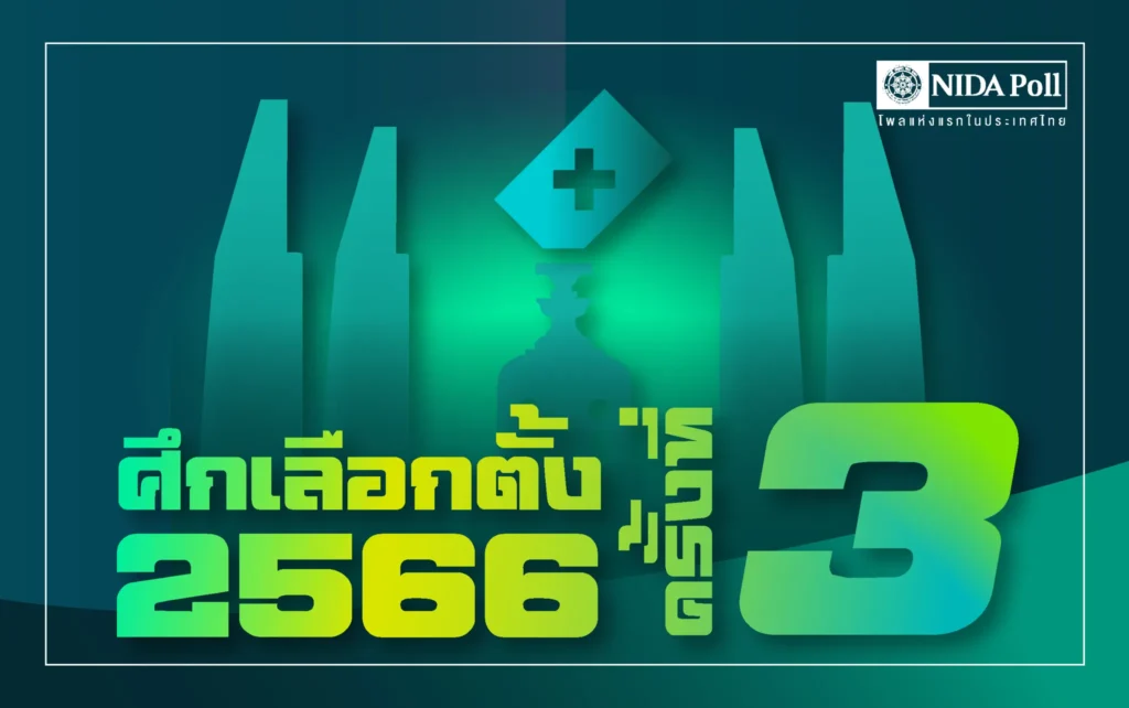 ศูนย์สำรวจความคิดเห็น นิด้าโพล สถาบันบัณฑิตพัฒนบริหารศาสตร์ (นิด้า) เปิดเผยผลสำรวจของประชาชน เรื่อง ศึกเลือกตั้ง 2566 ครั้งที่ 3 ทำการสำรวจระหว่างวันที่ 24-28 เมษายน 2566 จากประชาชนที่มีอายุ 18 ปีขึ้นไป กระจายทุกภูมิภาค ระดับการศึกษา อาชีพ และรายได้ ทั่วประเทศ รวมทั้งสิ้น จำนวน 2,500 หน่วยตัวอย่าง เกี่ยวกับศึกเลือกตั้ง 2566 ครั้งที่ 3 การสำรวจอาศัยการสุ่มตัวอย่างโดยใช้ความน่าจะเป็น จากบัญชีรายชื่อฐานข้อมูลตัวอย่างหลัก (Master Sample) ของ นิด้าโพล สุ่มตัวอย่างด้วยวิธีแบบง่าย (Simple Random Sampling) เก็บข้อมูลด้วยวิธีการสัมภาษณ์ทางโทรศัพท์ โดยกำหนดค่าความเชื่อมั่น ร้อยละ 97.0