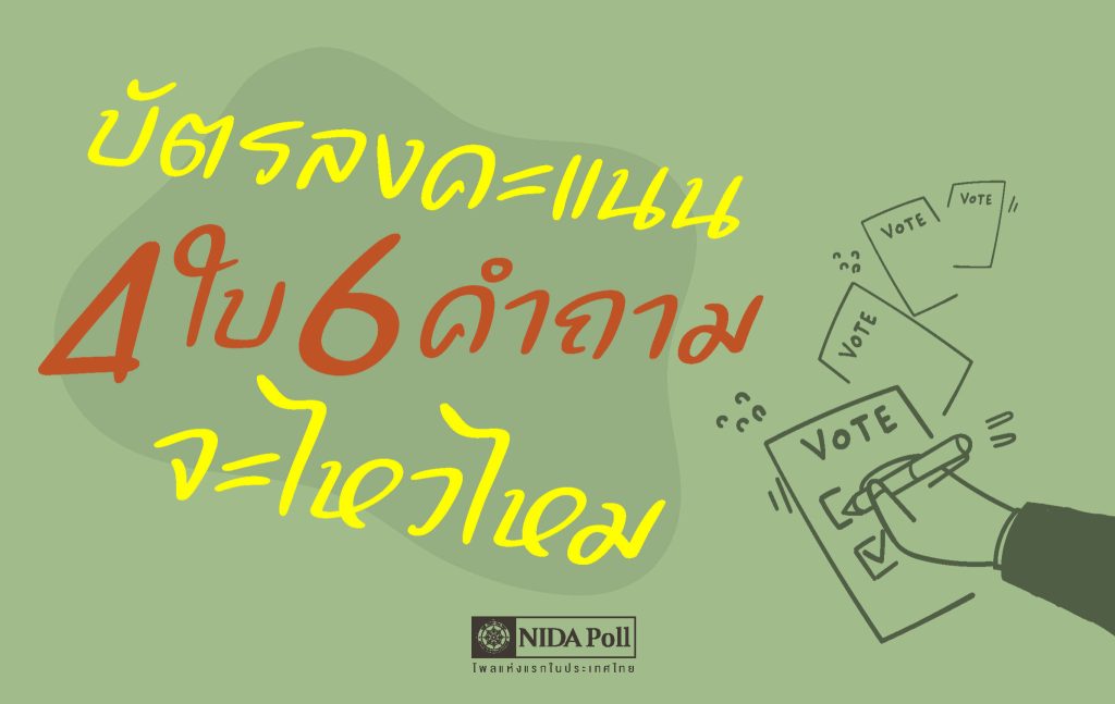 ศูนย์สำรวจความคิดเห็น “นิด้าโพล” สถาบันบัณฑิตพัฒนบริหารศาสตร์ (นิด้า) เปิดเผยผลการสำรวจ เรื่อง “บัตรลงคะแนน 4 ใบ 6 คำถามจะไหวไหม” ทำการสำรวจระหว่างวันที่ 7-9 ตุลาคม 2568 จากประชาชนที่มีอายุ 18 ปีขึ้นไป กระจายทุกภูมิภาค ระดับการศึกษา อาชีพ และรายได้ ทั่วประเทศ รวมจำนวนทั้งสิ้น 1,310 หน่วยตัวอย่าง เกี่ยวกับความคิดเห็นของประชาชนต่อบัตรลงคะแนนเสียงในการเลือกตั้งครั้งหน้า การสำรวจอาศัยการสุ่มตัวอย่างโดยใช้ความน่าจะเป็นจากบัญชีรายชื่อฐานข้อมูลตัวอย่างหลัก (Master Sample) ของ “นิด้าโพล” สุ่มตัวอย่างแบบหลายขั้นตอน (Multi-stage Sampling) เก็บข้อมูลด้วยวิธีการสัมภาษณ์ทางโทรศัพท์ โดยกำหนดค่าความคลาดเคลื่อนไม่เกิน 0.05 ที่ระดับความเชื่อมั่น ร้อยละ 97.0