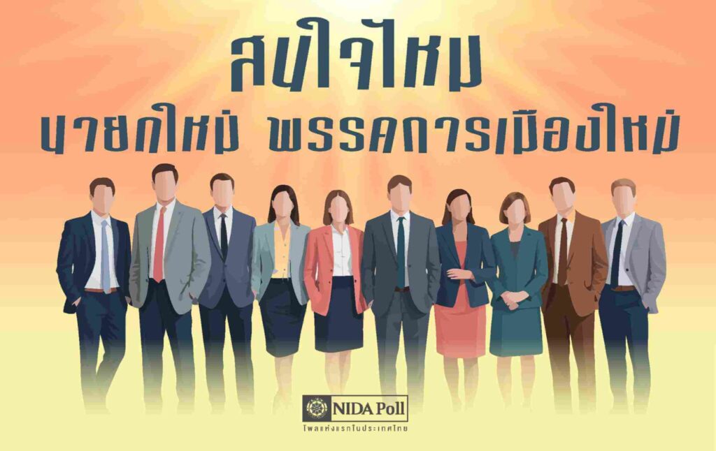ศูนย์สำรวจความคิดเห็น “นิด้าโพล” สถาบันบัณฑิตพัฒนบริหารศาสตร์ (นิด้า) เปิดเผยผลการสำรวจ เรื่อง “สนใจไหมนายกใหม่พรรคการเมืองใหม่” ทำการสำรวจระหว่างวันที่ 25-26 สิงหาคม 2568 จากประชาชนที่มีอายุ 18 ปีขึ้นไป กระจายทุกภูมิภาค ระดับการศึกษา อาชีพ และรายได้ ทั่วประเทศ รวมจำนวนทั้งสิ้น 1,310 หน่วยตัวอย่าง เกี่ยวกับความต้องการของประชาชนในการได้นายกรัฐมนตรีจากการเลือกตั้งครั้งหน้า การสำรวจอาศัยการสุ่มตัวอย่างโดยใช้ความน่าจะเป็นจากบัญชีรายชื่อฐานข้อมูลตัวอย่างหลัก (Master Sample) ของ “นิด้าโพล”สุ่มตัวอย่างแบบหลายขั้นตอน (Multi-stage Sampling) เก็บข้อมูลด้วยวิธีการสัมภาษณ์ทางโทรศัพท์ โดยกำหนดค่าความคลาดเคลื่อนไม่เกิน 0.05 ที่ระดับความเชื่อมั่น ร้อยละ 97.0