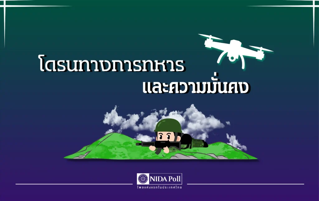 ศูนย์สำรวจความคิดเห็น “นิด้าโพล” สถาบันบัณฑิตพัฒนบริหารศาสตร์ (นิด้า) เปิดเผยผลการสำรวจ เรื่อง “โดรนทางการทหารและความมั่นคง” ทำการสำรวจระหว่างวันที่ 5-7 พฤศจิกายน 2568 จากประชาชนที่มี อายุ 18 ปีขึ้นไป และจบการศึกษาระดับมัธยมศึกษาหรือเทียบเท่าขึ้นไป กระจายทุกภูมิภาค อาชีพ และรายได้ทั่วประเทศ รวมจำนวนทั้งสิ้น 1,310 หน่วยตัวอย่าง เกี่ยวกับความคิดเห็นของประชาชนต่อการใช้โดรนในภารกิจทางทหารและความมั่นคงของไทย การสำรวจอาศัยการสุ่มตัวอย่างโดยใช้ความน่าจะเป็นจากบัญชีรายชื่อฐานข้อมูลตัวอย่างหลัก (Master Sample) ของ “นิด้าโพล” สุ่มตัวอย่างแบบหลายขั้นตอน (Multi-stage Sampling) เก็บข้อมูลด้วยวิธีการสัมภาษณ์ทางโทรศัพท์ โดยกำหนดค่าความคลาดเคลื่อนไม่เกิน 0.05 ที่ระดับความเชื่อมั่น ร้อยละ 97.0