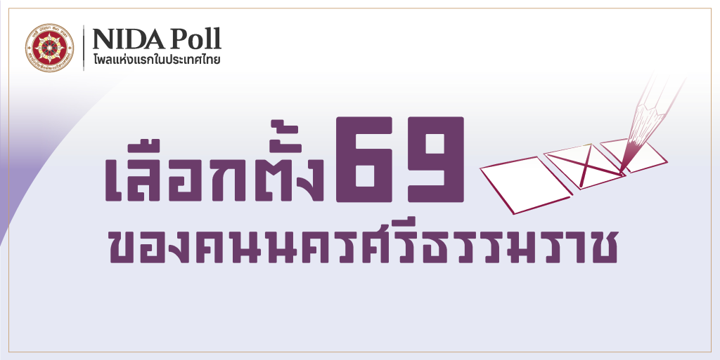 ศูนย์สำรวจความคิดเห็น “นิด้าโพล” สถาบันบัณฑิตพัฒนบริหารศาสตร์ (นิด้า) เปิดเผยผลการสำรวจ เรื่อง “เลือกตั้ง 69 ของคนนครศรีธรรมราช” ทำการสำรวจระหว่างวันที่ 19 – 21 มกราคม 2569 จากประชาชนที่มีอายุ 18 ปีขึ้นไป และมีสิทธิเลือกตั้งในจังหวัดนครศรีธรรมราช กระจายทุกระดับการศึกษา อาชีพ และรายได้ รวมจำนวนทั้งสิ้น 1,067 หน่วยตัวอย่าง เกี่ยวกับการเลือกตั้ง ปี 69 ของคนจังหวัดนครศรีธรรมราช การสำรวจอาศัยการสุ่มตัวอย่างโดยใช้ความน่าจะเป็นจากบัญชีรายชื่อฐานข้อมูลตัวอย่างหลัก (Master Sample) ของ “นิด้าโพล” สุ่มตัวอย่างแบบหลายขั้นตอน (Multi-stage Sampling) เก็บข้อมูลด้วยวิธีการสัมภาษณ์ทางโทรศัพท์ โดยกำหนดค่าความคลาดเคลื่อนไม่เกิน 0.05 ที่ระดับความเชื่อมั่น ร้อยละ 95.0
