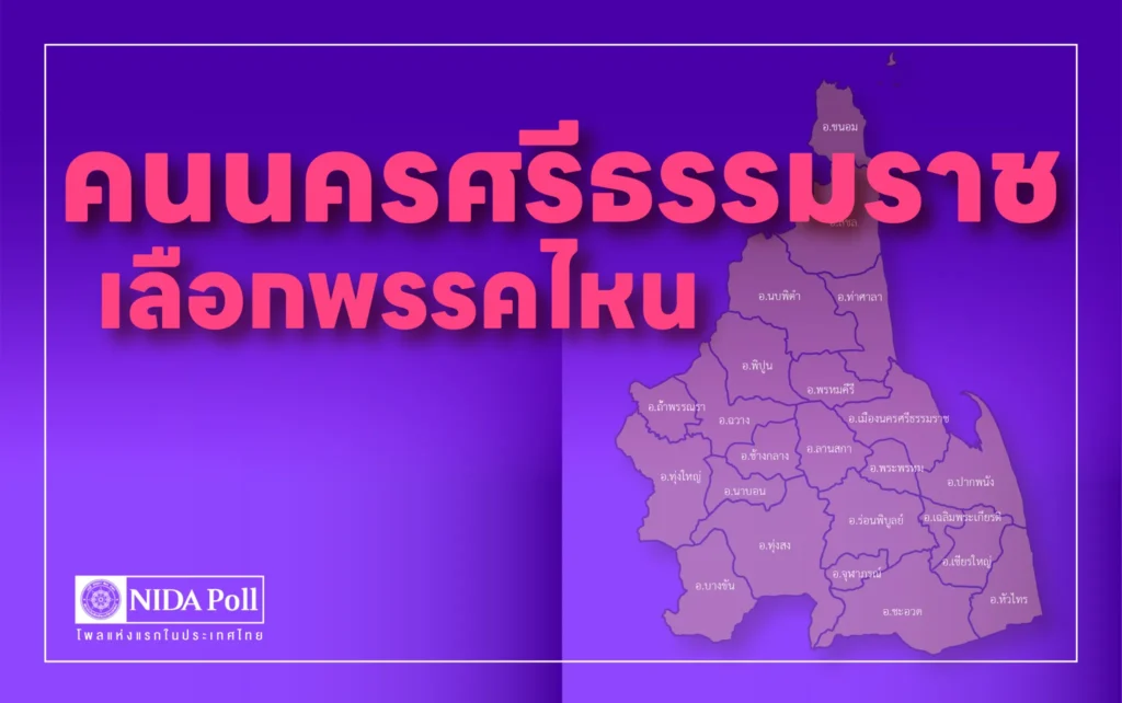 ศูนย์สำรวจความคิดเห็น นิด้าโพล สถาบันบัณฑิตพัฒนบริหารศาสตร์ (นิด้า) เปิดเผยผลสำรวจของประชาชน เรื่อง คนนครศรีธรรมราช เลือกพรรคไหน ทำการสำรวจระหว่างวันที่ 3-8 กุมภาพันธ์ 2566 จากประชาชนที่มีอายุ 18 ปีขึ้นไป และมีสิทธิเลือกตั้งในจังหวัดนครศรีธรรมราช กระจายทุกระดับการศึกษา อาชีพ และรายได้ รวมทั้งสิ้น จำนวน 1,310 หน่วยตัวอย่าง เกี่ยวกับคนนครศรีธรรมราชเลือกพรรคไหน การสำรวจอาศัย การสุ่มตัวอย่างโดยใช้ความน่าจะเป็นจากบัญชีรายชื่อฐานข้อมูลตัวอย่างหลัก (Master Sample) ของ นิด้าโพล สุ่มตัวอย่างด้วยวิธีแบบง่าย (Simple Random Sampling) เก็บข้อมูลด้วยวิธีการสัมภาษณ์ทางโทรศัพท์ โดยกำหนดค่าความเชื่อมั่น ร้อยละ 97.0