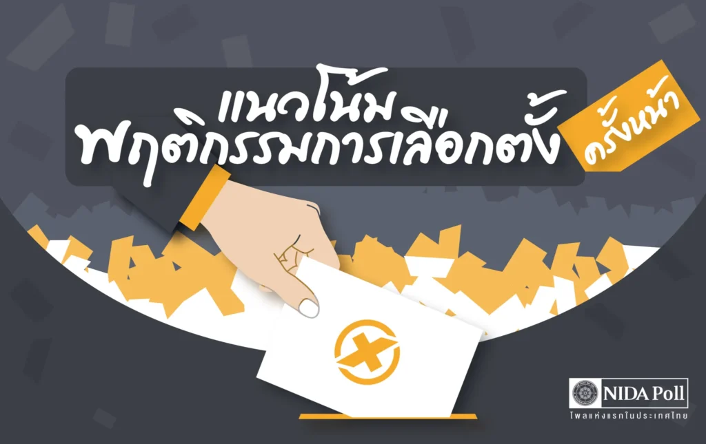 ศูนย์สำรวจความคิดเห็น นิด้าโพล สถาบันบัณฑิตพัฒนบริหารศาสตร์ (นิด้า) เปิดเผยผลสำรวจของประชาชน เรื่อง แนวโน้มพฤติกรรมการเลือกตั้งครั้งหน้า ทำการสำรวจระหว่างวันที่ 1-5 สิงหาคม 2565 จากประชาชนที่มีอายุ 18 ปีขึ้นไป กระจายทุกภูมิภาคระดับการศึกษา อาชีพ และรายได้ ทั่วประเทศ รวมทั้งสิ้น จำนวน 1,312 หน่วยตัวอย่าง เกี่ยวกับแนวโน้มพฤติกรรมการเลือกตั้งครั้งหน้า การสำรวจอาศัยการสุ่มตัวอย่างโดยใช้ความน่าจะเป็นจากบัญชีรายชื่อฐานข้อมูลตัวอย่างหลัก (Master Sample) ของ นิด้าโพล สุ่มตัวอย่างด้วยวิธีแบบง่าย (Simple Random Sampling) เก็บข้อมูลด้วยวิธีการสัมภาษณ์ทางโทรศัพท์ โดยกำหนดค่าความเชื่อมั่น ร้อยละ 97.0