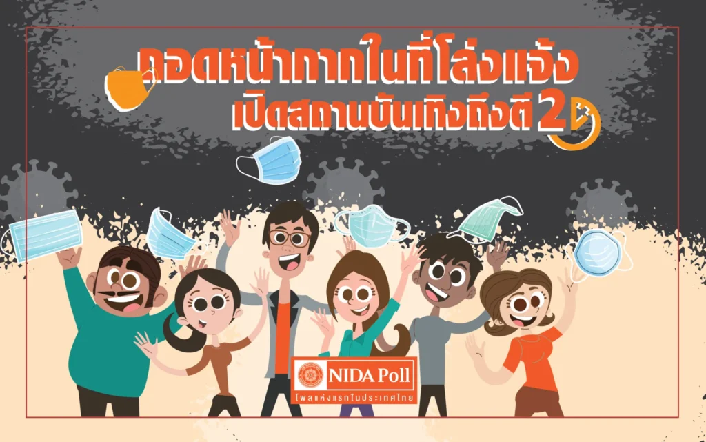 ศูนย์สำรวจความคิดเห็น นิด้าโพล สถาบันบัณฑิตพัฒนบริหารศาสตร์ (นิด้า) เปิดเผยผลสำรวจของประชาชน เรื่อง ถอดหน้ากากในที่โล่งแจ้ง – เปิดสถานบันเทิงถึงตี 2 ทำการสำรวจระหว่างวันที่ 6-8 มิถุนายน 2565 จากประชาชนที่มีอายุ 15 ปีขึ้นไป กระจายทุกภูมิภาค ระดับการศึกษา อาชีพ และรายได้ ทั่วประเทศ รวมทั้งสิ้น จำนวน 1,310 หน่วยตัวอย่าง เกี่ยวกับแนวคิดที่จะอนุญาตให้ประชาชนถอดหน้ากากในที่โล่งแจ้งและการเปิดสถานบันเทิงถึงตี 2 การสำรวจอาศัยการสุ่มตัวอย่างโดยใช้ความน่าจะเป็นจากบัญชีรายชื่อฐานข้อมูลตัวอย่างหลัก (Master Sample) ของ นิด้าโพล สุ่มตัวอย่างด้วยวิธีแบบง่าย (Simple Random Sampling) เก็บข้อมูลด้วยวิธีการสัมภาษณ์ทางโทรศัพท์ โดยกำหนดค่าความเชื่อมั่น ร้อยละ 97.0