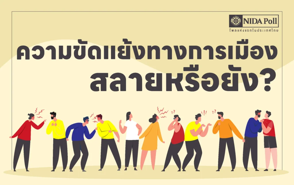 ศูนย์สำรวจความคิดเห็น นิด้าโพล สถาบันบัณฑิตพัฒนบริหารศาสตร์ (นิด้า) เปิดเผยผลสำรวจของประชาชน เรื่อง ความขัดแย้ง ทางการเมือง สลายหรือยัง? ทำการสำรวจระหว่างวันที่ 23-25 สิงหาคม 2566 จากประชาชนที่มีอายุ 18 ปีขึ้นไป กระจายทุกภูมิภาค ระดับการศึกษา อาชีพ และรายได้ ทั่วประเทศ รวมทั้งสิ้น จำนวน 1,310 หน่วยตัวอย่าง เกี่ยวกับความขัดแย้งทางการเมือง การสำรวจอาศัยการสุ่มตัวอย่าง โดยใช้ความน่าจะเป็นจากบัญชีรายชื่อฐานข้อมูลตัวอย่างหลัก (Master Sample) ของ นิด้าโพล สุ่มตัวอย่างด้วยวิธีแบบง่าย (Simple Random Sampling) เก็บข้อมูลด้วยวิธีการสัมภาษณ์ทางโทรศัพท์ โดยกำหนดค่าความเชื่อมั่น ร้อยละ 97.0