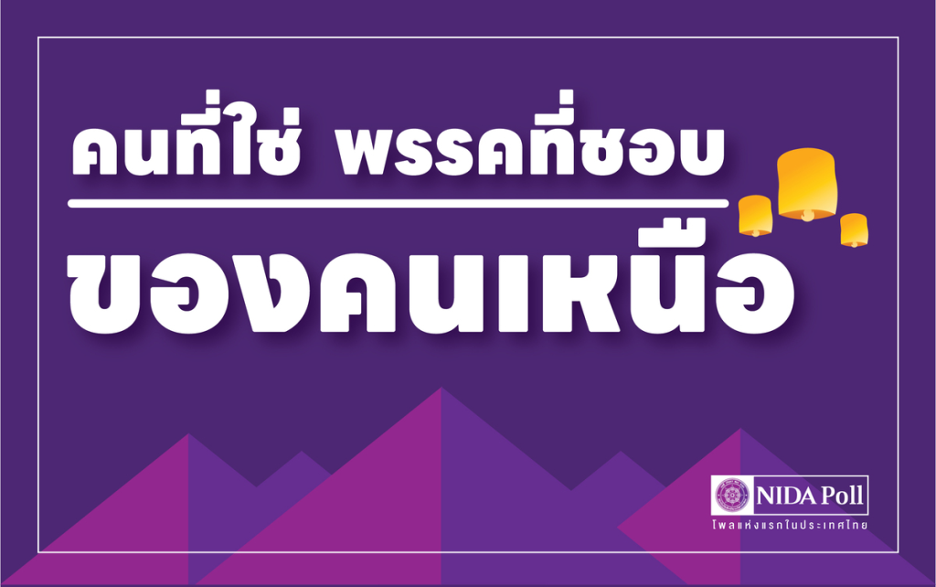 ศูนย์สำรวจความคิดเห็น “นิด้าโพล” สถาบันบัณฑิตพัฒนบริหารศาสตร์ (นิด้า) เปิดเผยผลสำรวจของประชาชน เรื่อง “คนที่ใช่ พรรคที่ชอบของคนเหนือ” ทำการสำรวจระหว่างวันที่ 28 ตุลาคม – 2 พฤศจิกายน 2565 จากประชาชนที่มีอายุ 18 ปีขึ้นไป และมีสิทธิเลือกตั้งในภาคเหนือ กระจายทุกระดับการศึกษา อาชีพ และรายได้ รวมทั้งสิ้น จำนวน 2,000 หน่วยตัวอย่าง เกี่ยวกับคนที่ใช่ พรรคที่ชอบ ของคนเหนือ การสำรวจอาศัยการสุ่มตัวอย่างโดยใช้ความน่าจะเป็นจากบัญชีรายชื่อฐานข้อมูลตัวอย่างหลัก (Master Sample) ของ “นิด้าโพล” สุ่มตัวอย่างด้วยวิธีแบบง่าย (Simple Random Sampling) เก็บข้อมูลด้วยวิธีการสัมภาษณ์ทางโทรศัพท์ โดยกำหนดค่าความเชื่อมั่น ร้อยละ 97.0
