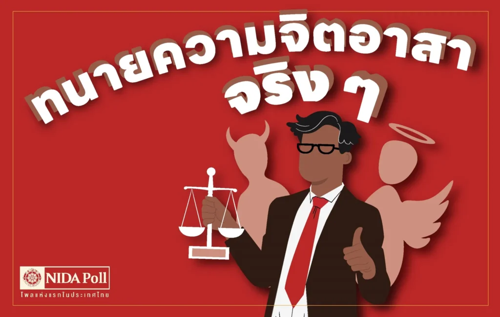 นิด้าโพลเปิดเผยผลสำรวจเรื่อง “ทนายความจิตอาสาจริง ๆ” สำรวจระหว่างวันที่ 28–30 ตุลาคม 2567 จากประชาชน 1,310 ตัวอย่างทั่วประเทศ พบว่า