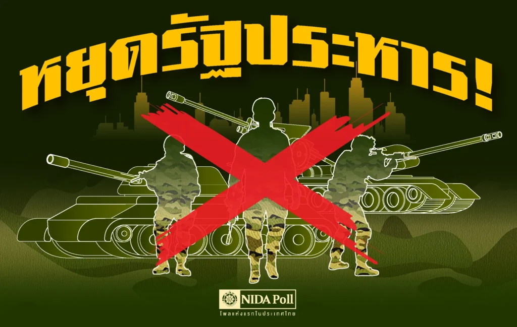ศูนย์สำรวจความคิดเห็น นิด้าโพล สถาบันบัณฑิตพัฒนบริหารศาสตร์ (นิด้า) เปิดเผยผลการสำรวจของประชาชน เรื่อง หยุดรัฐประหาร! ทำการสำรวจระหว่างวันที่ 22-23 เมษายน 2567 จากประชาชนที่มีอายุ 18 ปีขึ้นไป กระจายทุกภูมิภาค ระดับการศึกษา อาชีพ และรายได้ ทั่วประเทศ รวมทั้งสิ้น จำนวน 1,310 หน่วยตัวอย่าง เกี่ยวกับร่างพระราชบัญญัติจัดระเบียบกระทรวงกลาโหม กับการรัฐประหารในปรระเทศไทย การสำรวจอาศัยการสุ่มตัวอย่างโดยใช้ความน่าจะเป็นจากบัญชีรายชื่อฐานข้อมูลตัวอย่างหลัก (Master Sample) ของ นิด้าโพล สุ่มตัวอย่างแบบหลายขั้นตอน (Multi-stage Sampling) เก็บข้อมูลด้วยวิธีการสัมภาษณ์ทางโทรศัพท์ โดยกำหนดค่าความเชื่อมั่น ร้อยละ 97.0