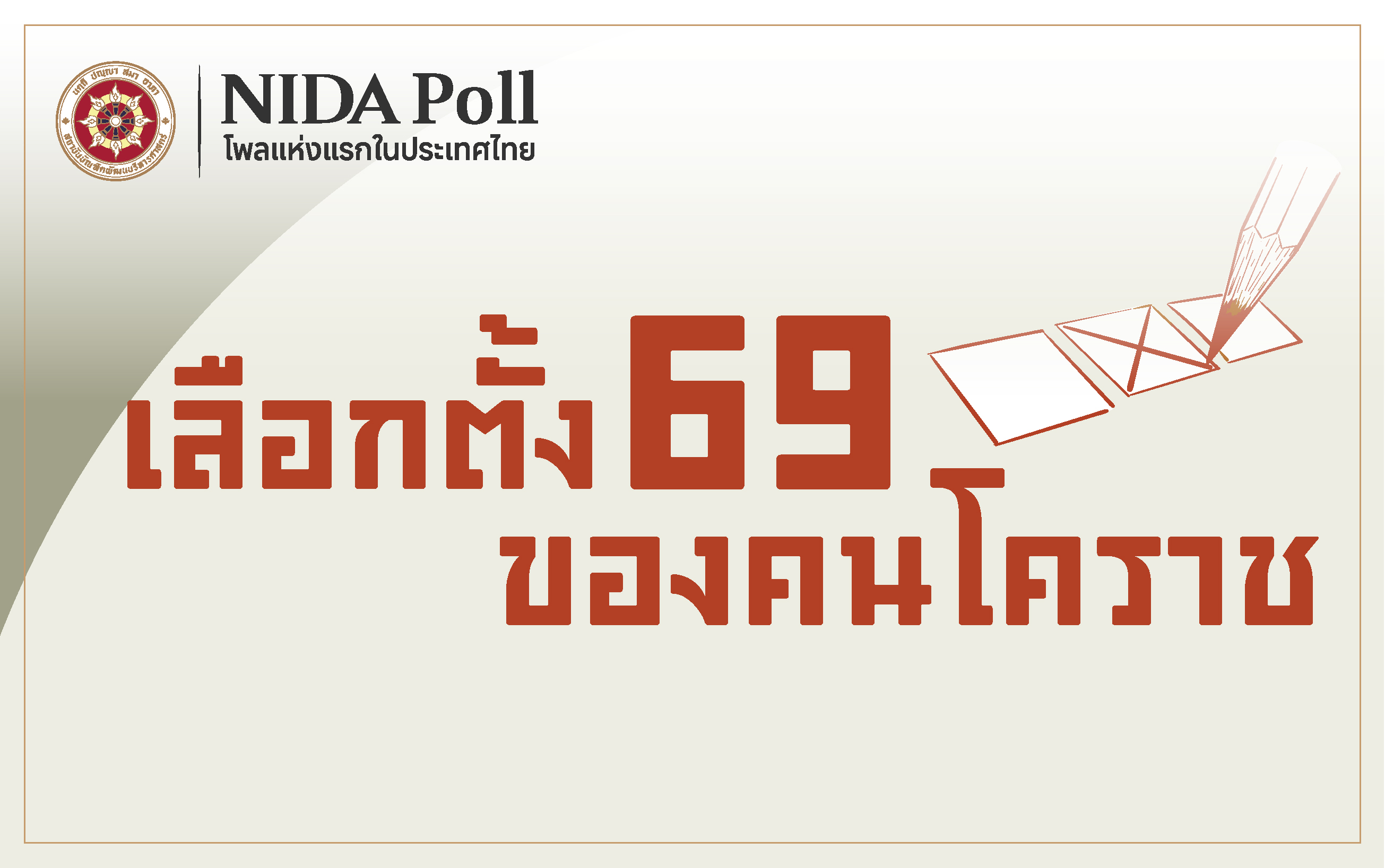 ศูนย์สำรวจความคิดเห็น “นิด้าโพล” สถาบันบัณฑิตพัฒนบริหารศาสตร์ (นิด้า) เปิดเผยผลการสำรวจเรื่อง “เลือกตั้ง 69 ของคนโคราช” ทำการสำรวจระหว่างวันที่ 18 - 22 ธันวาคม 2568 จากประชาชนที่มีอายุ 18 ปีขึ้นไป และมีสิทธิเลือกตั้งในจังหวัดนครราชสีมา กระจายทุกระดับการศึกษา อาชีพ และรายได้ รวมจำนวนทั้งสิ้น 1,067 หน่วยตัวอย่าง เกี่ยวกับการเลือกตั้ง ปี 69 ของคนจังหวัดนครราชสีมา การสำรวจอาศัยการสุ่มตัวอย่าง โดยใช้ความน่าจะเป็นจากบัญชีรายชื่อฐานข้อมูลตัวอย่างหลัก (Master Sample) ของ “นิด้าโพล” สุ่มตัวอย่างแบบหลายขั้นตอน (Multi-stage Sampling) เก็บข้อมูลด้วยวิธีการสัมภาษณ์ทางโทรศัพท์ โดยกำหนดค่าความคลาดเคลื่อนไม่เกิน 0.05 ที่ระดับความเชื่อมั่น ร้อยละ 95.0